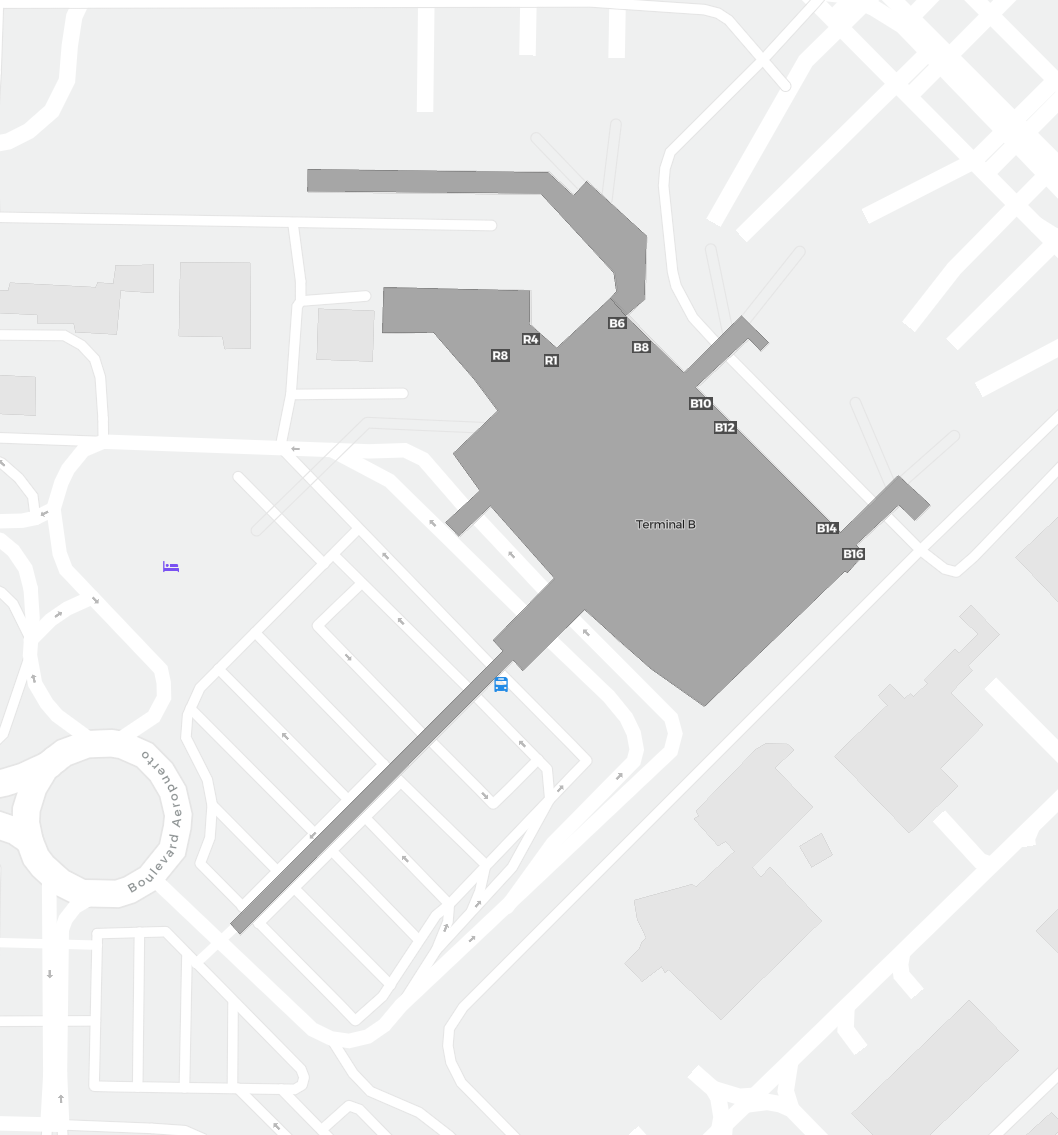 Este é um mapa com zoom sobre Monterrei (MTY). O mapa pode dar-lhe uma visão geral da área exterior com terminais, parques de estacionamento, e em alguns aeroportos também detalhes dos portões, serviços de aluguer de carros e outras comodidades ao fazer zoom.