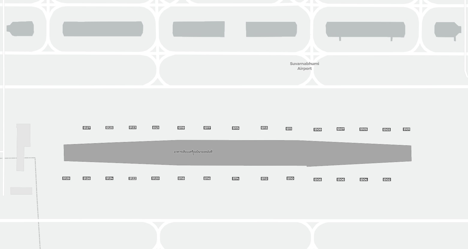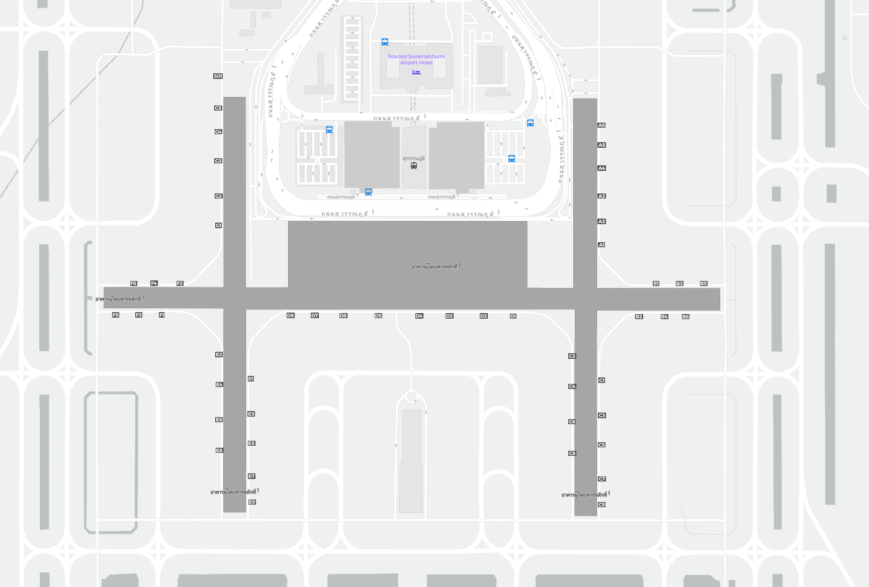 Este é um mapa com zoom sobre Banguecoque (BKK). O mapa pode dar-lhe uma visão geral da área exterior com terminais, parques de estacionamento, e em alguns aeroportos também detalhes dos portões, serviços de aluguer de carros e outras comodidades ao fazer zoom.