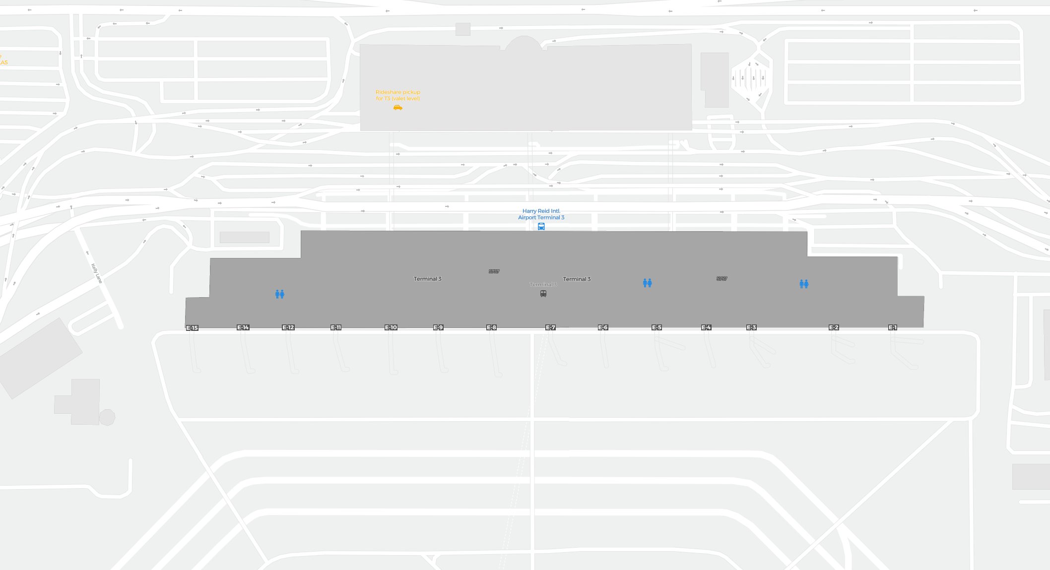 Este é um mapa com zoom sobre Las Vegas (LAS). O mapa pode dar-lhe uma visão geral da área exterior com terminais, parques de estacionamento, e em alguns aeroportos também detalhes dos portões, serviços de aluguer de carros e outras comodidades ao fazer zoom.